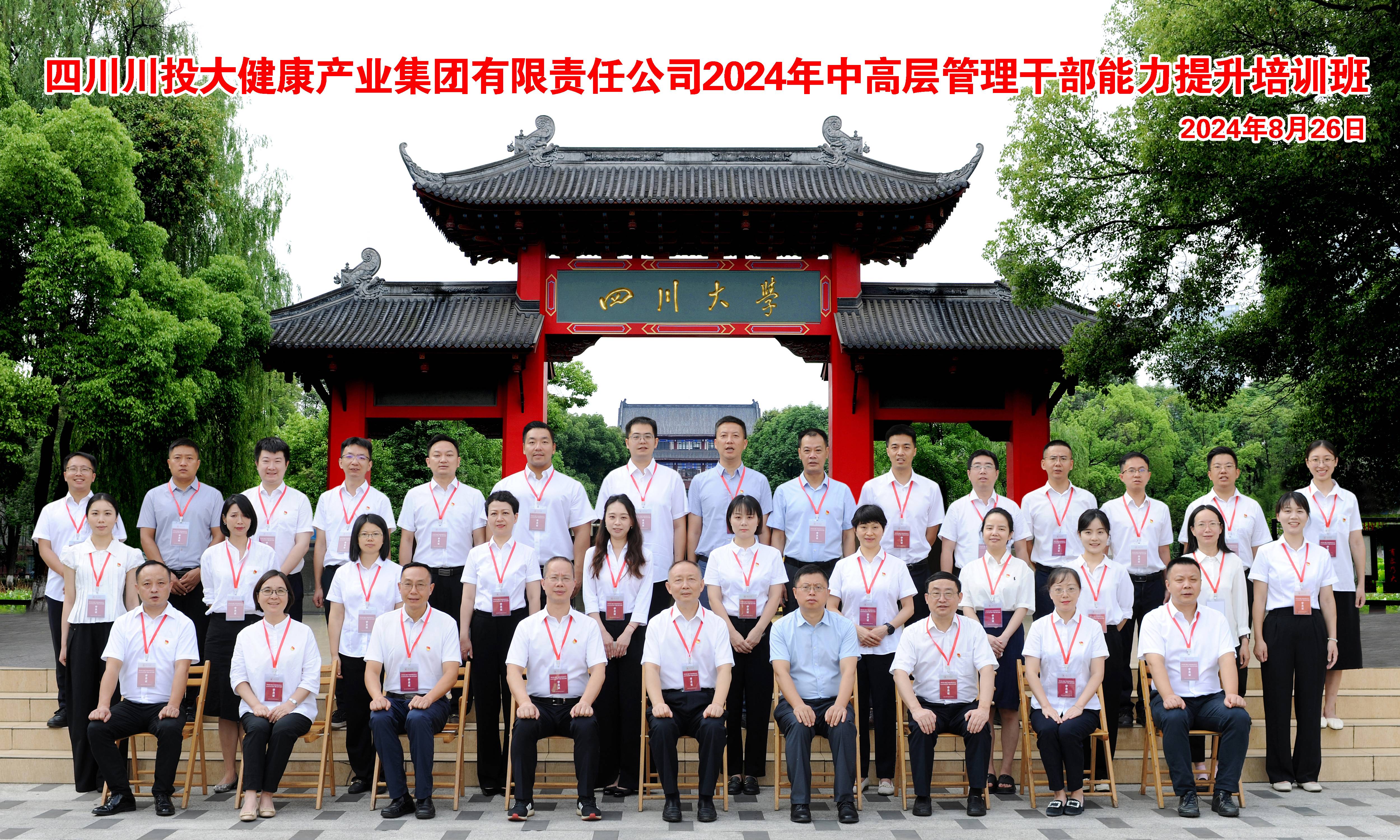 为深入学习贯彻党的二十届三中全会精神,全面提高干部现代化建设能力,8月26—30日,四川川投大健康产业集团有限责任公司产业集团在四川大学望江校区举办2024年中高层管理干部能力提升培训班。