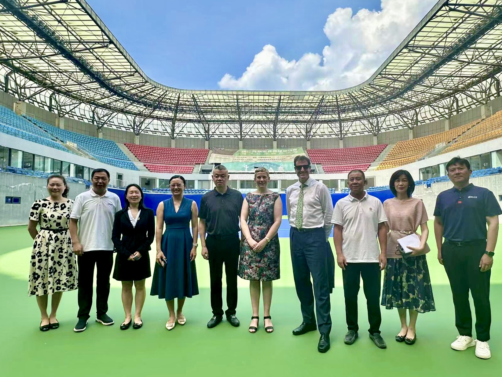 9月2日下午,川投国网公司接待澳大利亚驻成都总领事一行。本次考察由澳大利亚驻成都总领事邵美珍女士、澳中关系国家基金会首席执行官高戈锐先生发起,四川省体育局、成都市体育局、成都市外事办、成都市双流区文化广电体育和旅游局相关负责人陪同,主要就四川举办澳大利亚网球公开赛亚太区外卡赛筹备工作情况以及川投国网公司中心赛场、半决赛场、室外球场和相关配套设施进行了详细考察。