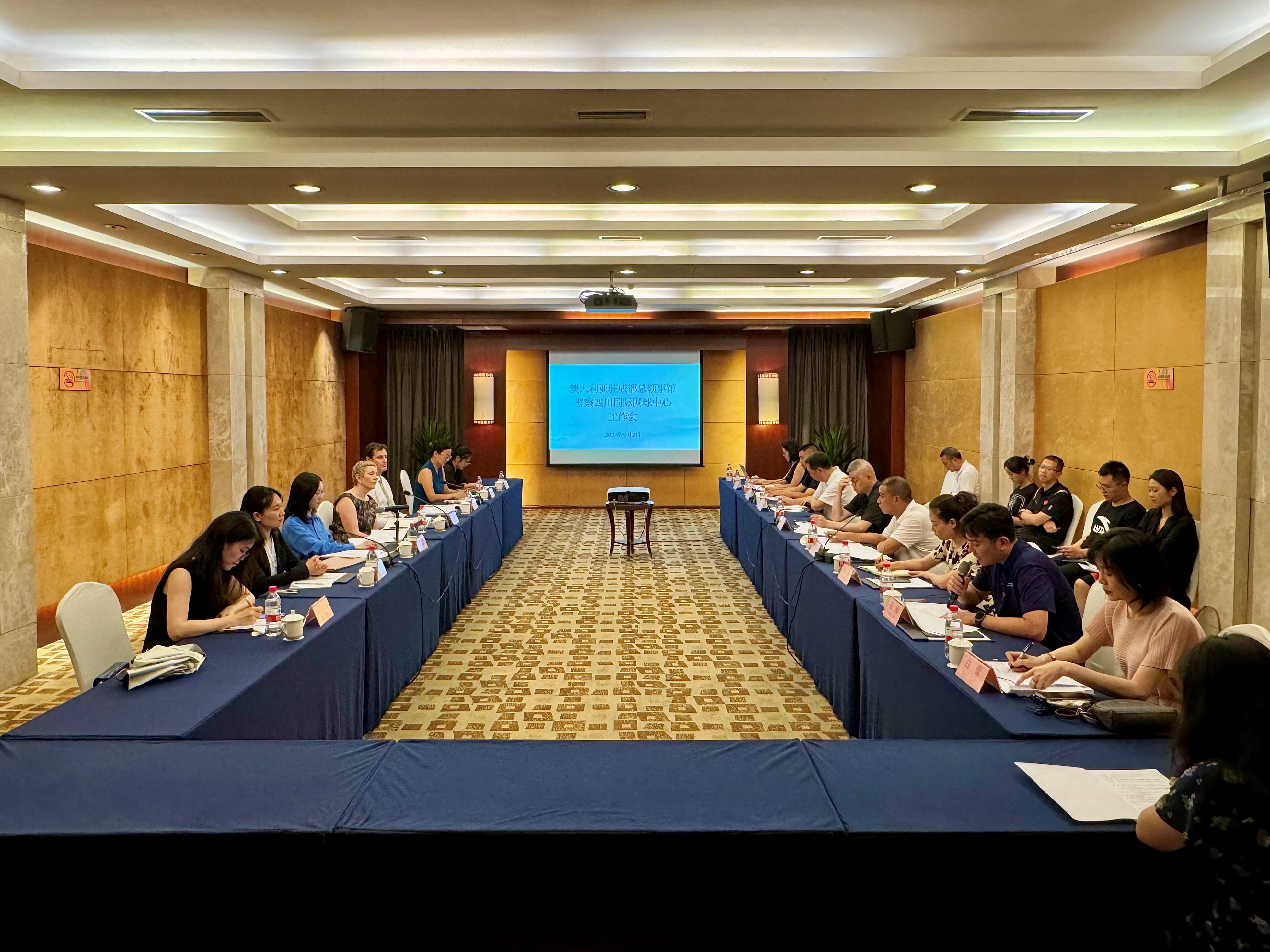 实地考察结束后,澳方代表与四川省体育局、成都市体育局、成都市双流区文化广电体育和旅游局、泸州老窖股份有限公司、川投国网公司举行了工作会谈。会上,泸州老窖股份有限公司、成都市双流区文化广电体育和旅游局、川投国网公司分别介绍了澳网外卡赛的筹备进展和属地保障准备。