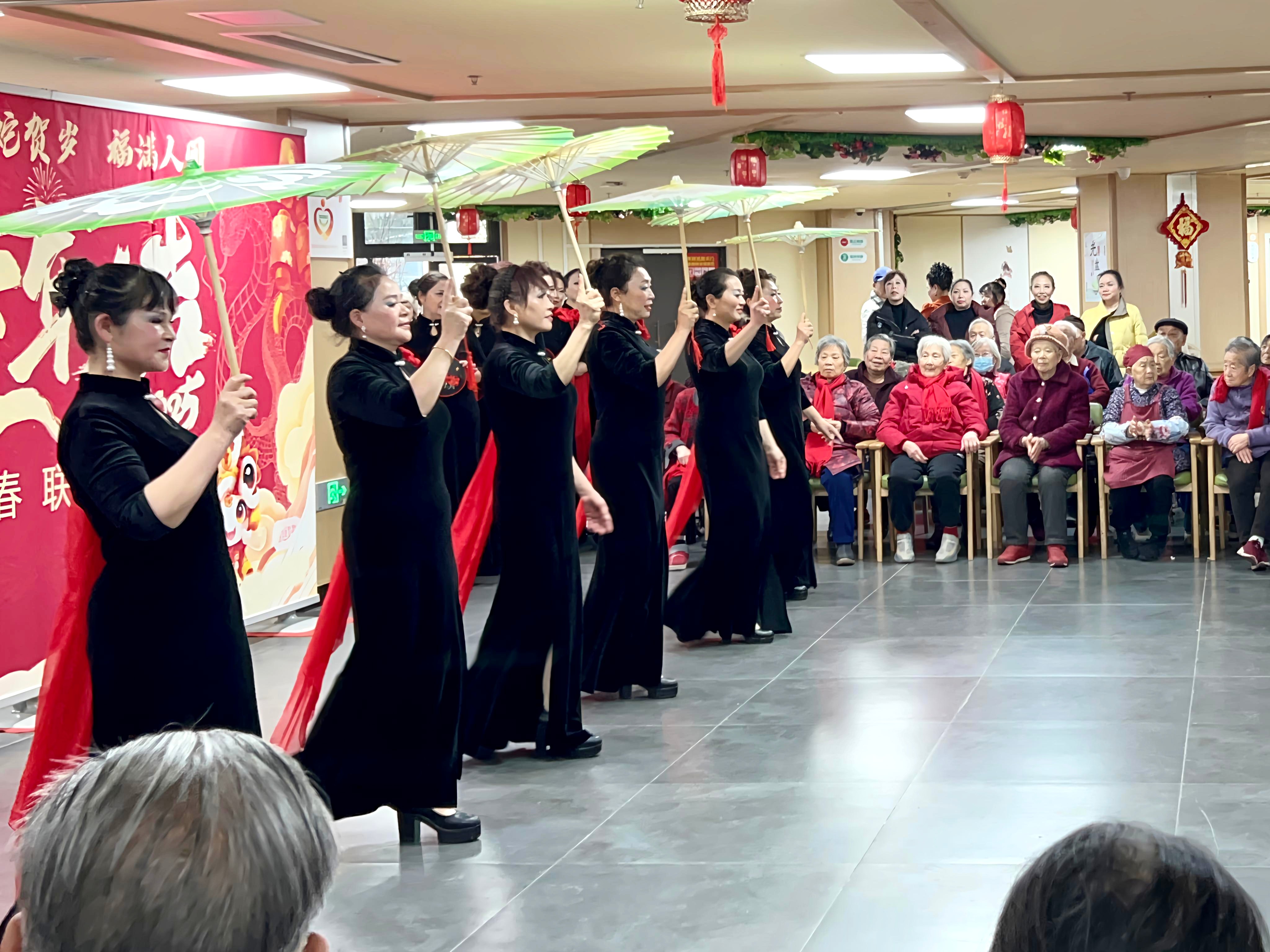 武侯吉福院推出“暖心短托”服务,帮助2个有需要的家庭解决燃眉之急;联动武侯社区老年学院、卓雅艺术团、家属艺术团开展院内迎新联欢会,长者们的掌声和欢笑声交织在一起,院儿里“年味儿”别样浓。