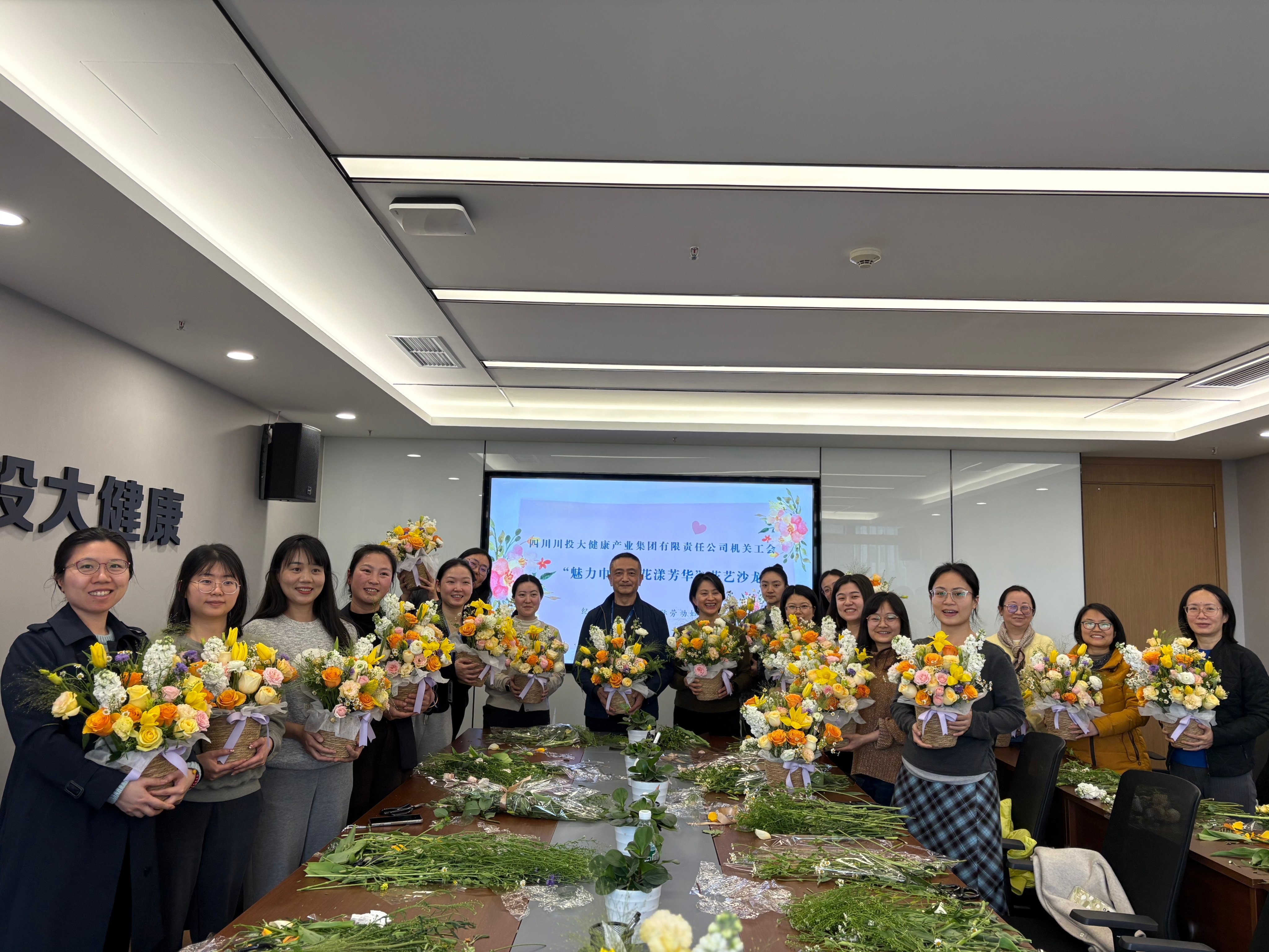 机关工会:开展“魅力巾帼 花漾芳华”花艺沙龙,邀请了专业的花艺师现场指导、教授插花技巧,女职工们在动手制作插花作品时,洋溢着春日暖阳般的愉悦笑容,充分展示了健康向上的精神风貌和丰富多彩的业余文化生活及对生活的无限热爱。