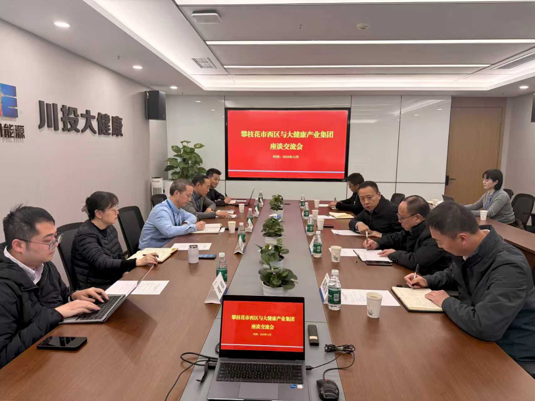 攀枝花市西区区委办、区经信局,鼎信集团相关领导,大健康产业集团经营班子,投资发展部、综合事务部相关人员参加座谈。