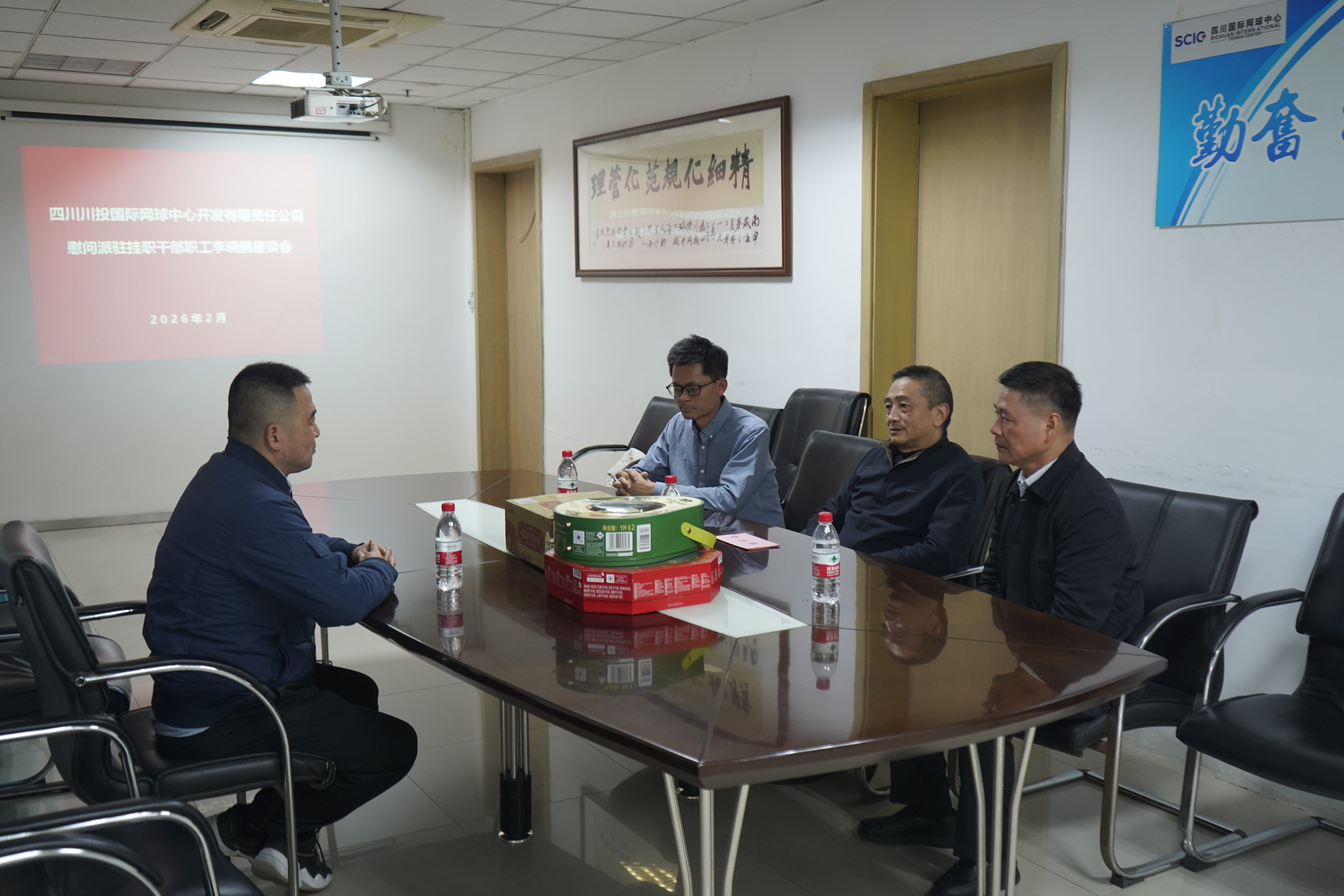 2月12日下午,大健康产业集团党委副书记、职工董事、工会主席王少甫深入国网公司,开展春节前送温暖走访慰问活动,向公司一名驻村干部和坚守岗位的一线员工致以节日问候和新春祝福。国网公司党委副书记、纪委书记余华伟,财务总监曾林及相关部门负责人陪同走访慰问。