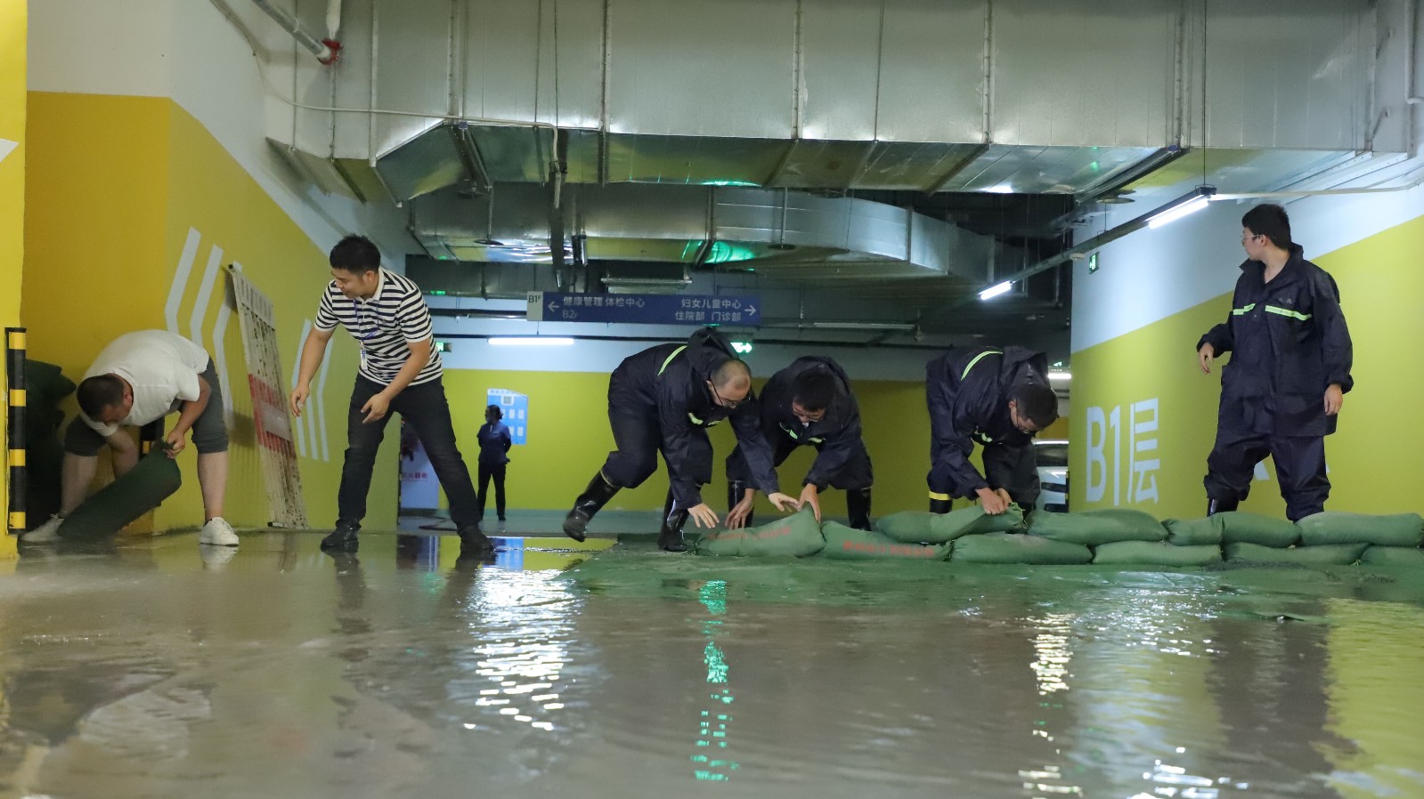 会后,实地开展了防汛减灾应急演练。本次演练模拟医院所在地区遭遇暴雨天气,雨量较大,医院负一楼停车场发生雨水倒灌且有人员被困的情况,医院立即启动防汛应急预案。根据演练方案各自分工,迅速完成现场警戒、人员疏散、病患现场救治、防水墙搭建、重点设备巡检、物资库房巡视、防疫消杀等各节点任务,顺利完成防汛应急演练目标任务。