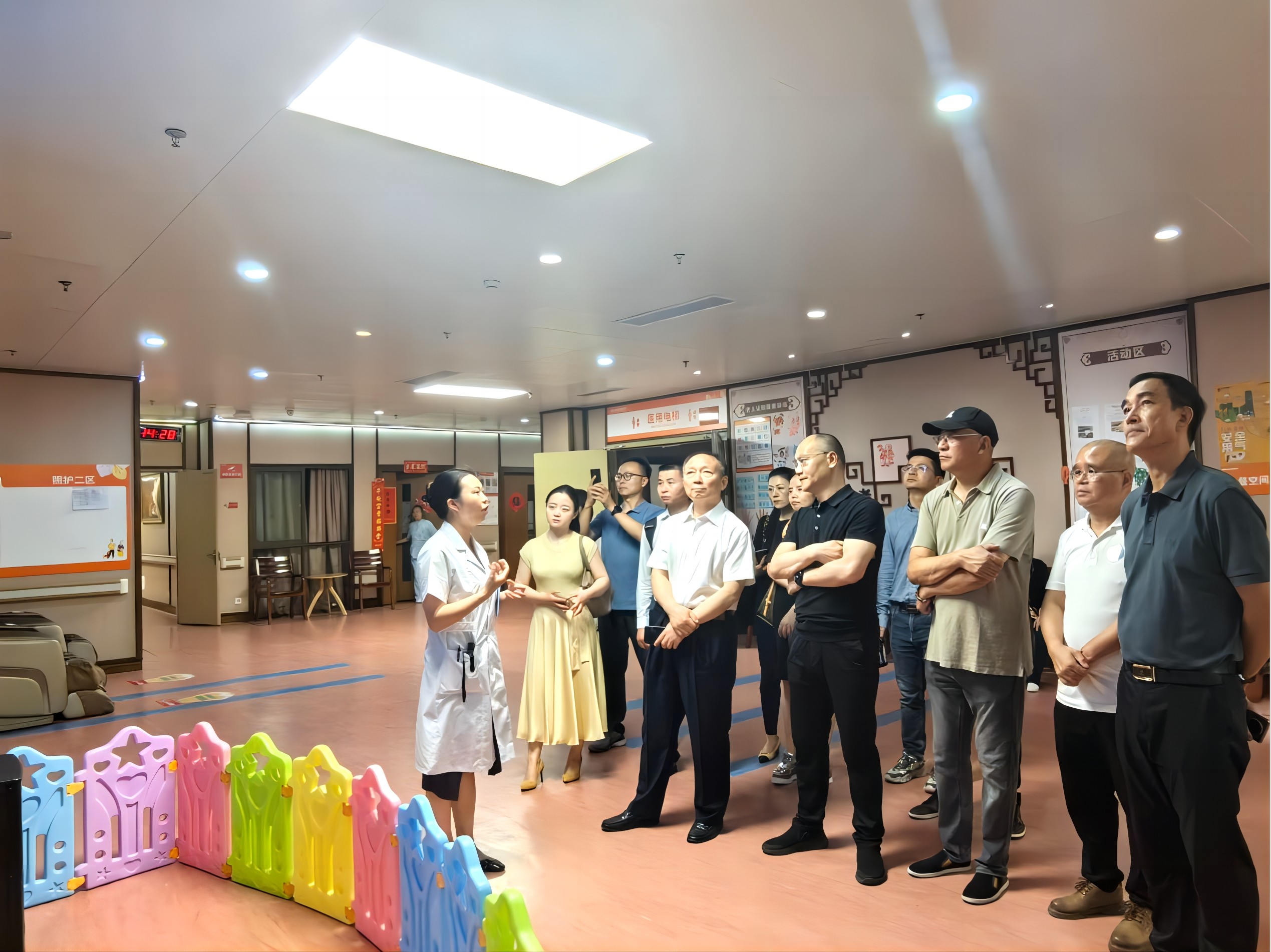 鲁洪斌一行调研了锦欣集团花乡老年公寓、橘米母婴中心、精神病医院、老年病医院等项目,并对各项目功能区域、设施环境等进行参观调研。