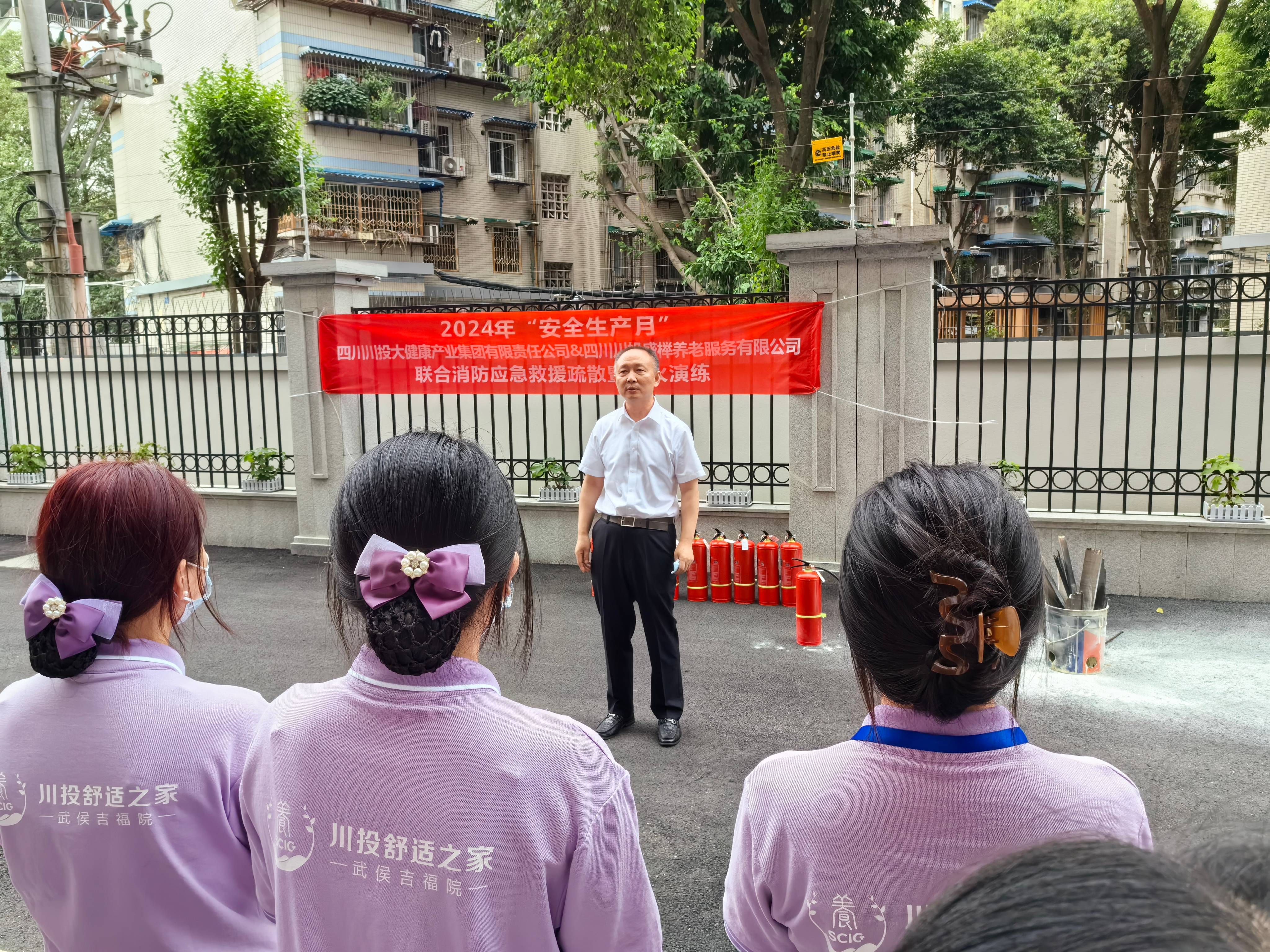 今年6月是全国第23个安全生产月,为积极响应国家安全生产号召,围绕“人人讲安全,个个会应急-畅通生命通道”的活动主题,进一步提升员工消防安全意识和应对突发火灾事故的能力,6月21日下午,四川川投大健康产业集团有限责任公司产业集团与川投盛榉公司在川投舒适之家·武侯吉福院开展联合消防安全知识培训暨消防应急救援疏散演练活动。