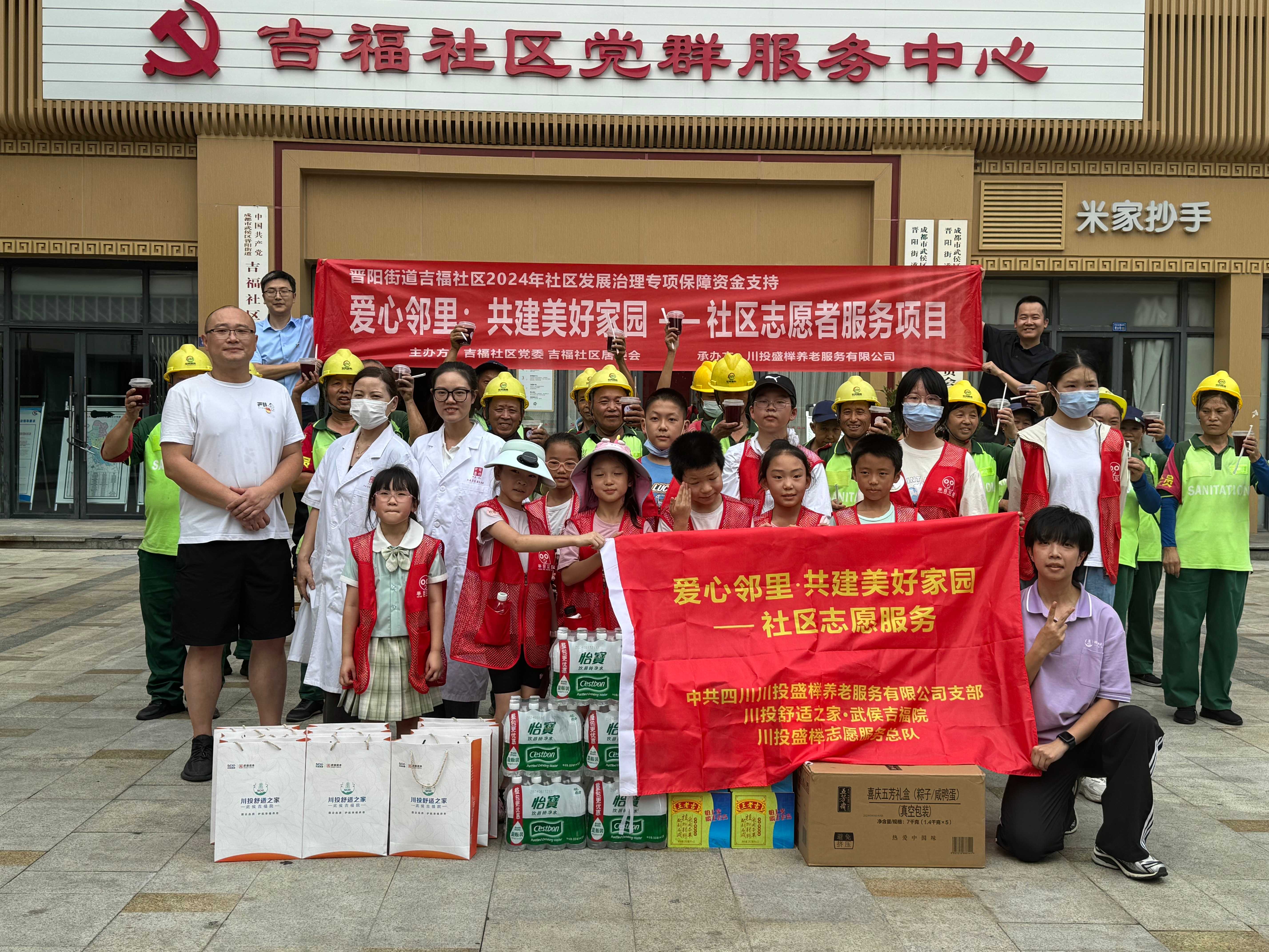 由川投盛榉公司党支部牵头,联合川投盛榉公司志愿者队伍、武侯青年志愿者协会成员组建“爱心小队”,头顶炎炎烈日,携带着精心筹备的清凉物资,前往武侯区吉福社区环卫站及派出所,向高温下仍坚守岗位、默默奉献的环卫工人与警务人员送去夏日的慰问并致以崇高的敬意。