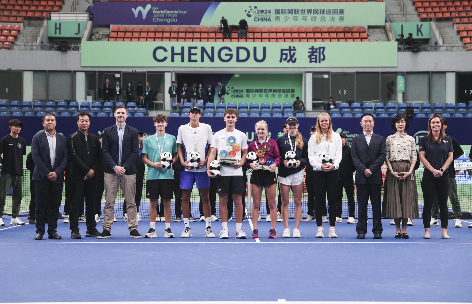 10月20日,2024国际网联世界网球巡回赛青少年年终总决赛在川投国网公司中心赛场精彩上演,至此,为期五天的比赛圆满收官。国际网联青少年赛事负责人马特·拜福德,国际网联青少年委员会委员、中国网球协会副秘书长周文学,成都市体育局机关党委书记杨慎微,成都市双流区文化广电体育和旅游局副局长柯亮,川投国网公司党委书记、执行董事白蕾,国际网联青少年赛事高级经理凯瑟琳·米奇等嘉宾出席颁奖仪式。