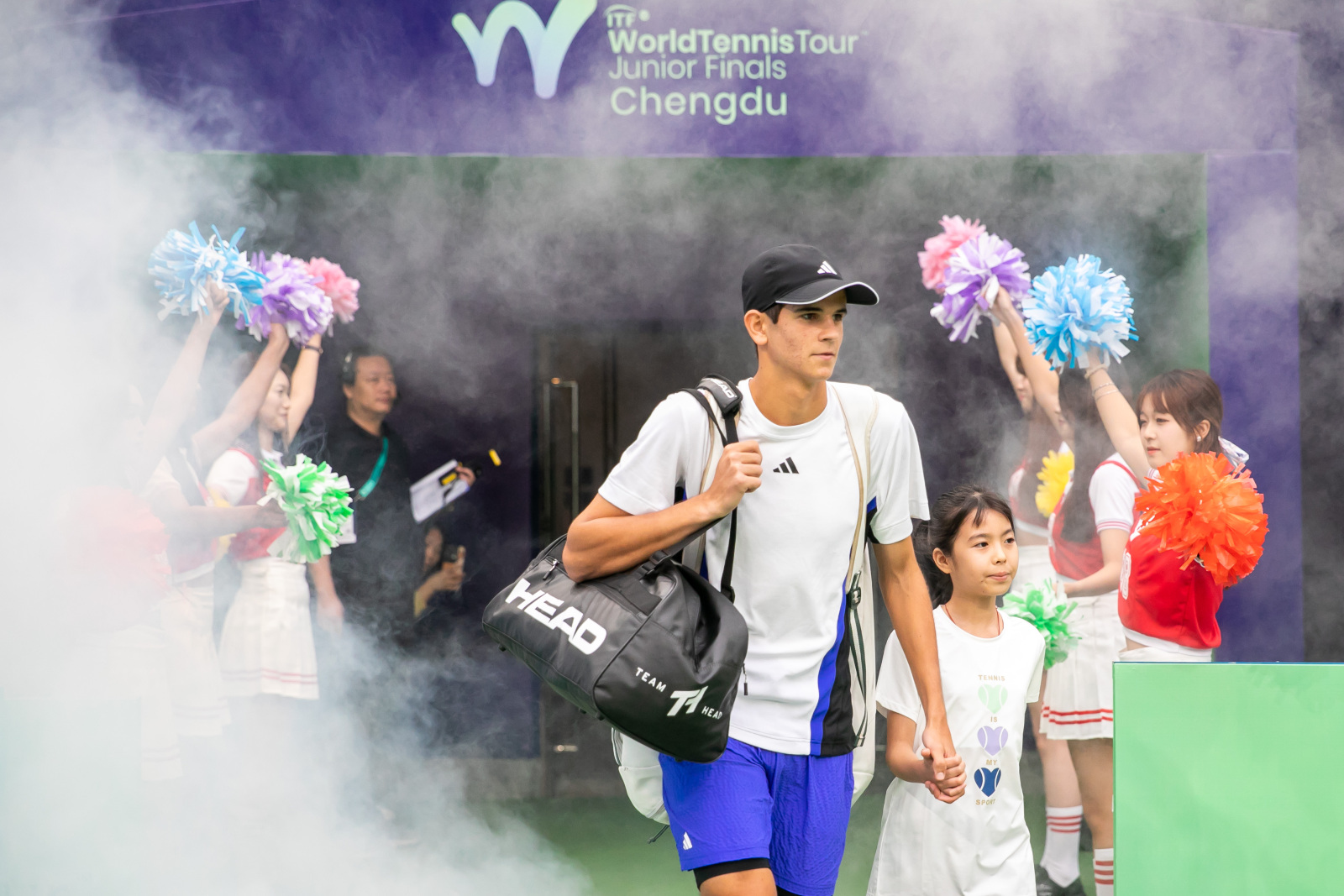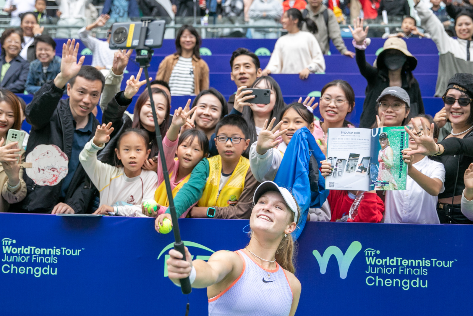活动期间正值2024年国际网联世界网球巡回赛青少年年终总决赛在四川川投国际网球中心激情上演,孩子们来到中心赛场,近距离观看国际网球赛事、体验网球运动氛围、感受竞技体育魅力。在组委会的安排下,孩子们作为球童与参赛球手牵手入场,零距离交流合影,还获得了一份精心准备的赛事纪念品。