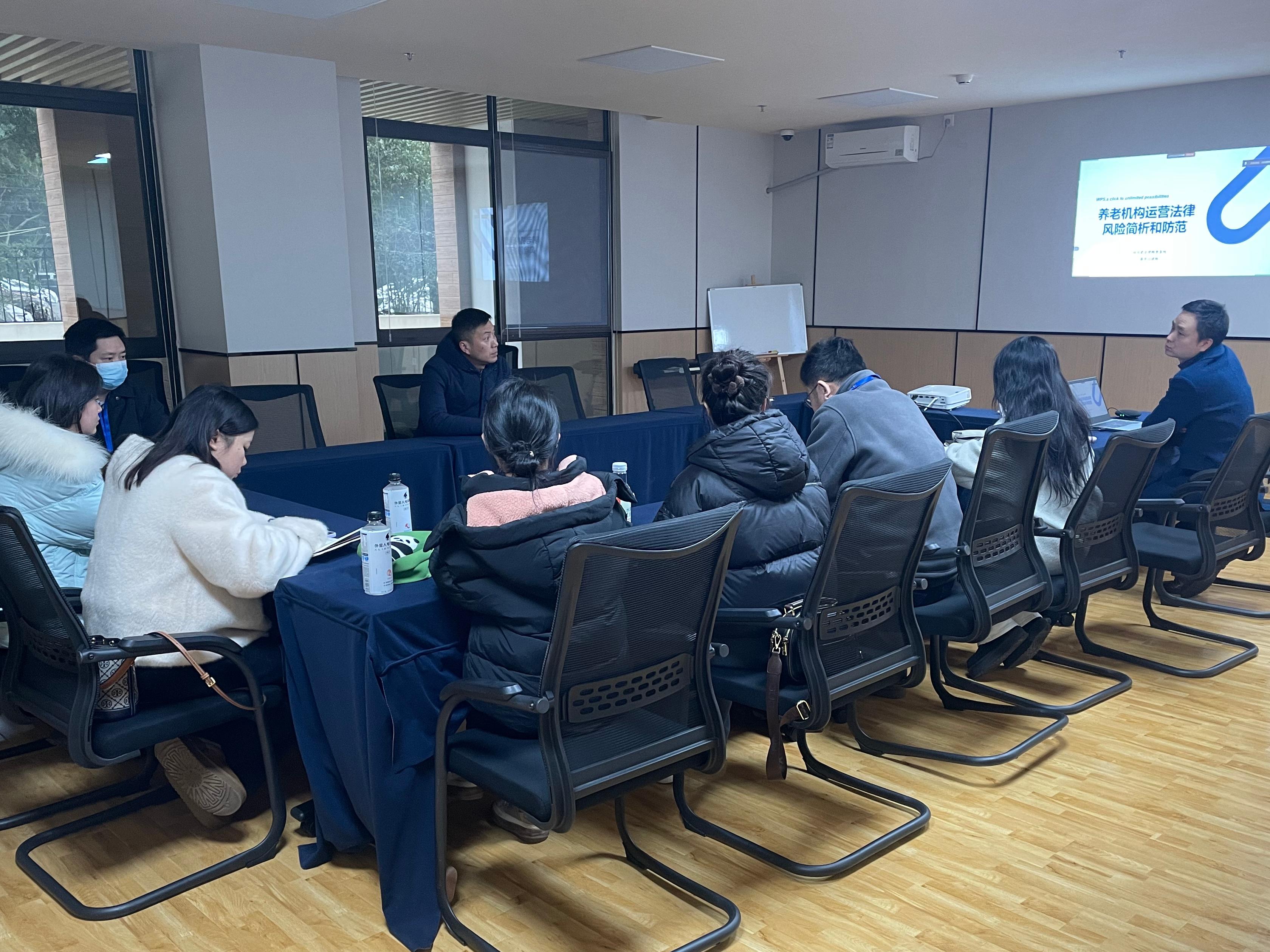 为有效规避、防范养老机构开展长者服务及日常运营过程中的法律风险,充分保障养老机构及入住长者的合法权益,1月17日,川投盛榉公司邀请常年法律顾问单位——四川君合律师事务所律师蒋华川为公司及项目全员进行“养老机构运营法律风险简析与防范”精细化管理培训。