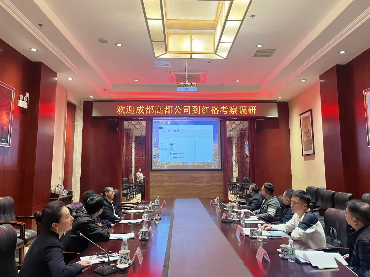 2月21日,成都高都公司副总经理罗龙胜、张龙一行赴攀西项目考察,与红投公司在红格温泉假日酒店盐边厅会议室交流座谈。