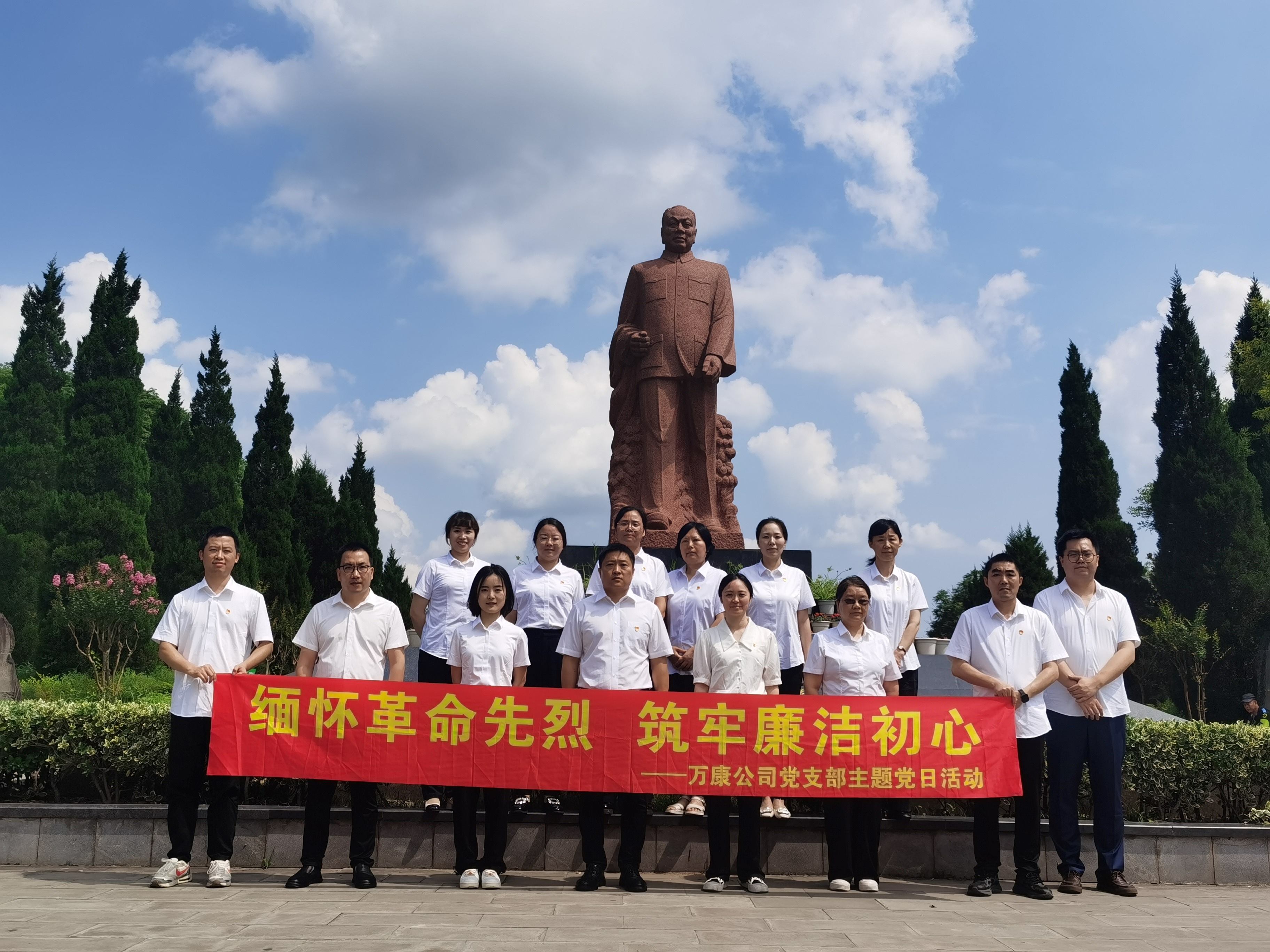 为庆祝中国共产党成立104周年,扎实推进深入贯彻中央八项规定精神学习教育,7月10日,万康公司党支部组织党员、入党积极分子、关键岗位干部职工前往乐至县陈毅故里,开展“缅怀革命先烈 筑牢廉洁初心”主题党日活动。