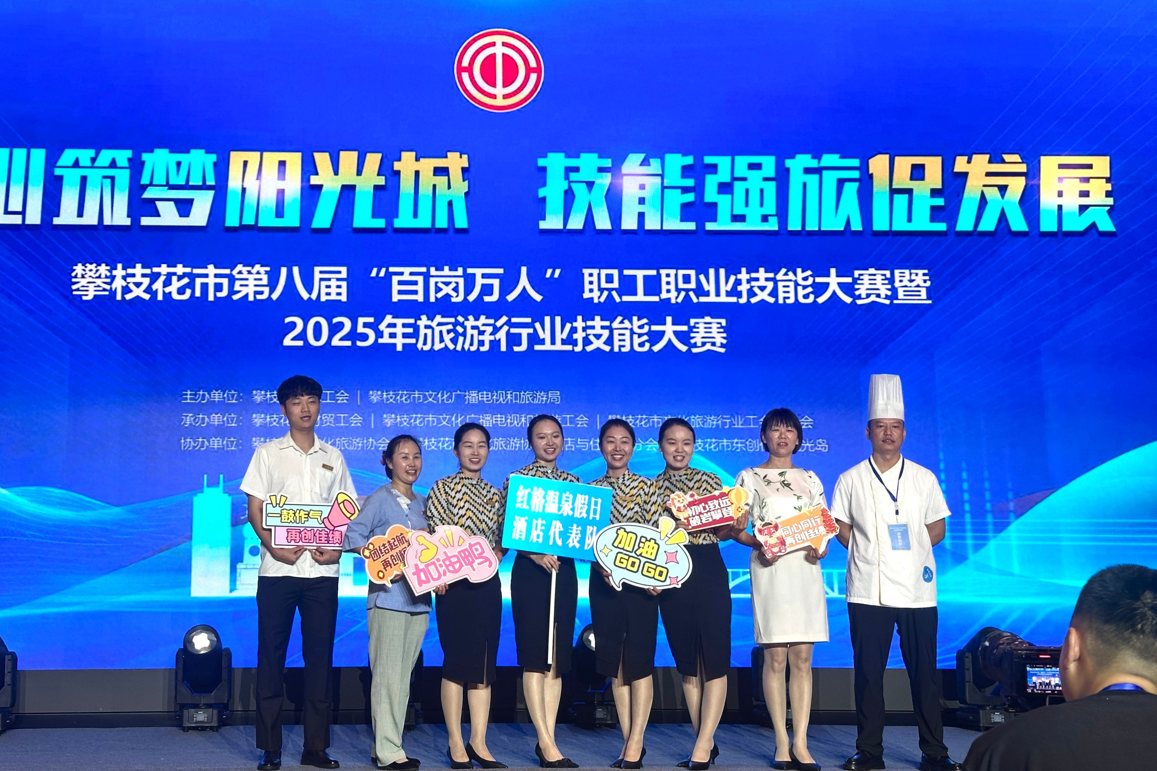 本次大赛以“弘扬工匠精神、培育服务人才、助推文旅提质”为主题,旨在通过技能比拼与行业交流,全面提升攀枝花市旅游行业的服务标准化水平与游客体验感。共有来自全市各个县区的31名优秀选手、7个团体同台竞技,红格温泉假日酒店选派3名选手参加“中式摆台、中式铺床、中式烹调”个人赛项目,组建5人团队参加“礼仪展示”团体赛项目。面对强劲对手,参赛选手沉着应战、发挥稳定,凭借扎实的基本功、精湛的技艺和良好的职业素养,最终斩获团体三等奖的佳绩。