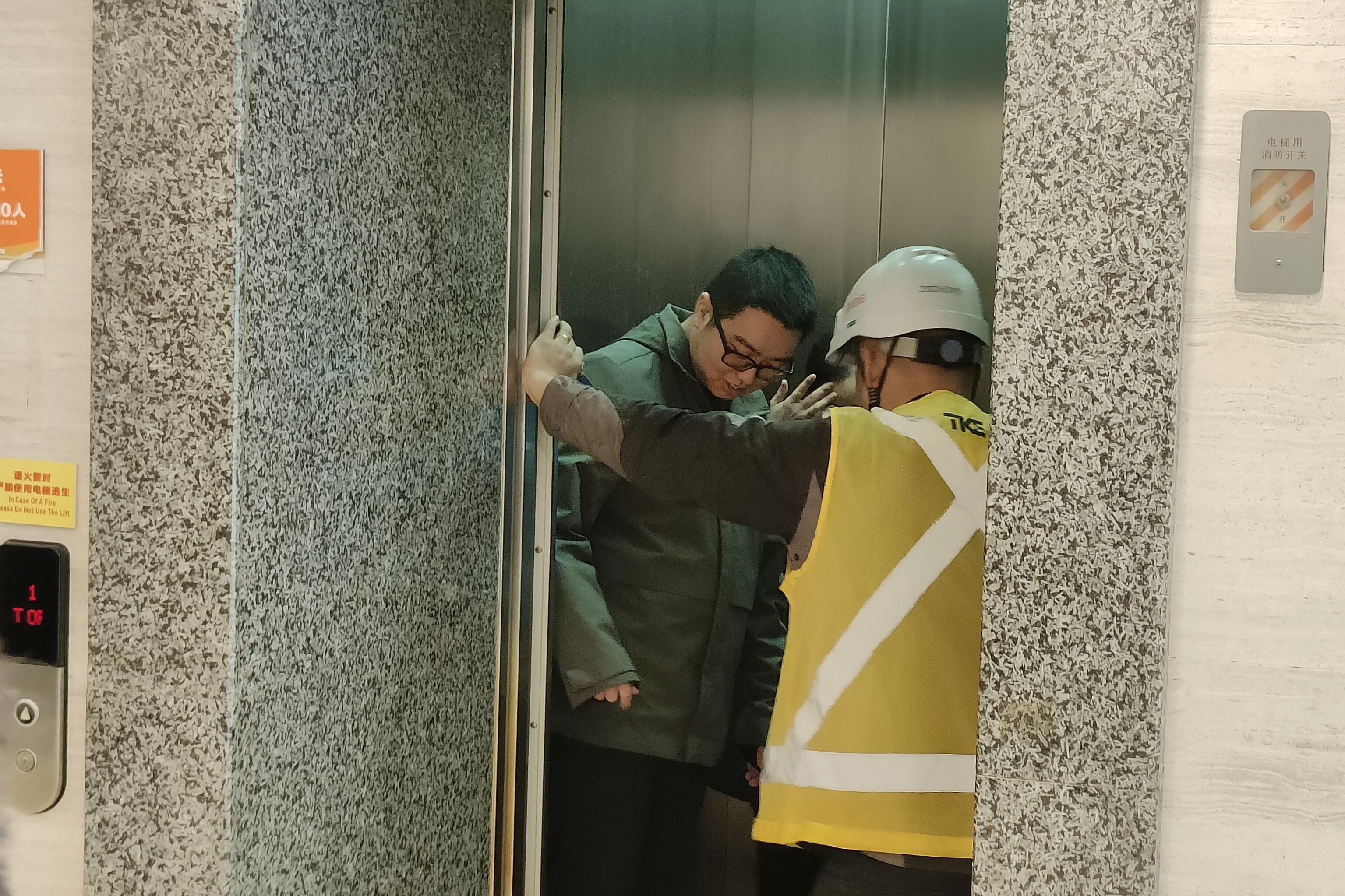 演练模拟了电梯在运行过程中突发故障,致使乘客被困的紧急状况。“事故”发生后,“被困乘客”迅速按下紧急通话按钮求救,监控室值班人员第一时间接到报警,即刻通知电梯维保人员与应急救援小组赶赴现场,救援小组迅速依据应急预案展开行动,通讯联络组全程与“被困乘客”保持通话,及时安抚其紧张情绪。最后救援小组凭借专业技能,精准判断电梯位置,熟练操作救援工具,成功将“被困乘客”安全救出。