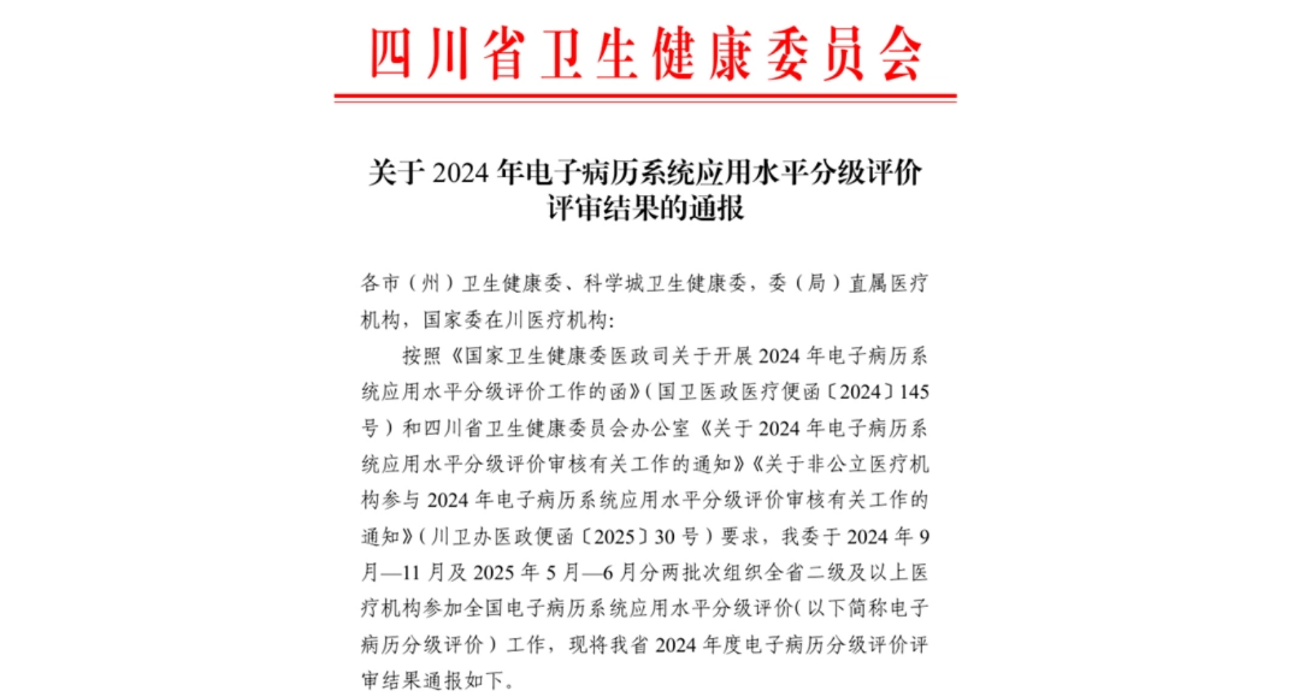 近日,四川省卫生健康委员会办公室发布《关于2024年电子病历系统应用水平分级评价评审结果的通报》,川投西昌医院成功通过国家级四级评审。这一成果标志着川投西昌医院诊疗服务数字化、智能化发展踏上新征程。