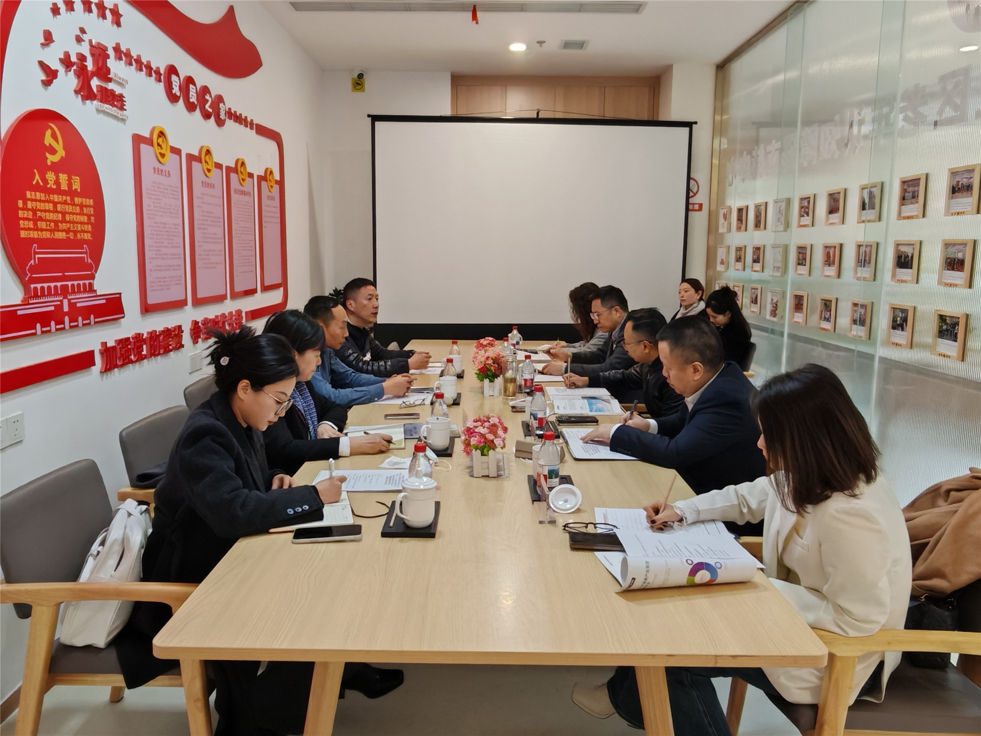 12月12日上午,四川省环保产业集团有限公司党委书记、董事长陈健,中国人民人寿保险股份有限公司四川省分公司党委委员、副总经理李兵,中建长江(四川)城市建设发展有限公司董事长陈黔江,康宅(山东)健康建筑科技有限公司副总经理刘军,成都和跃健康管理有限公司执行董事曹靖一行到访盛榉公司,大健康产业集团副总经理、财务总监姜涛主持会议。