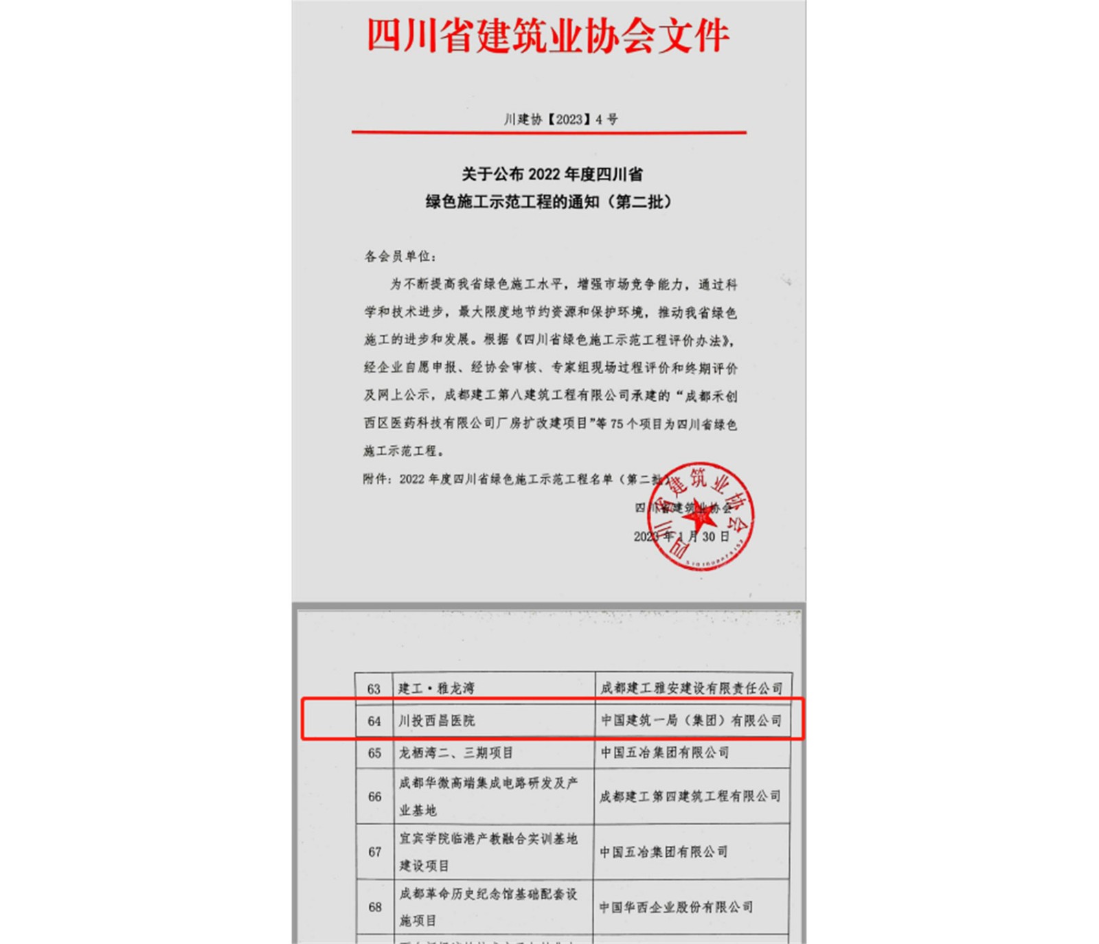 2023年1月30日,由川投集团开发建设的川投西昌医院被四川省建筑业协会评选为2022年“四川省绿色施工示范工程”。
