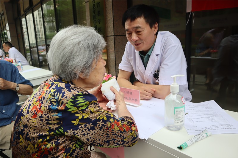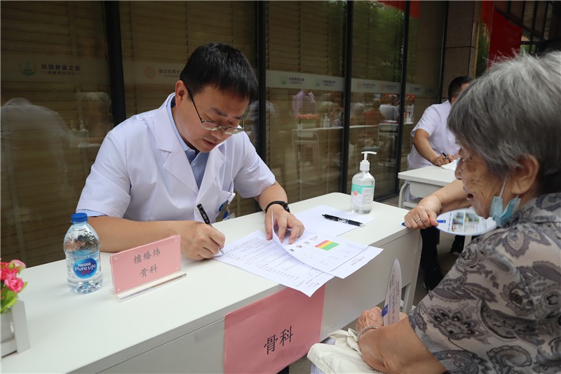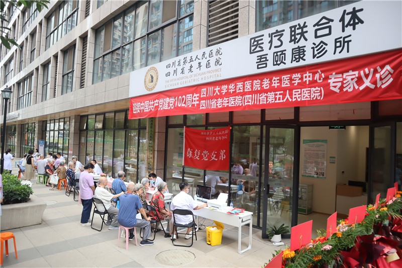 开业当天,为庆祝建党102周年,弘扬伟大建党精神,四川大学华西医院老年医学中心、四川省老年医院的多名专家在现场开展“迎接中国共产党建党102周年”主题的健康义诊活动,为长者提供健康诊疗、老年病评估、中医诊脉服务,并向长者科普疾病预防、健康管理及心理卫生等方面知识。