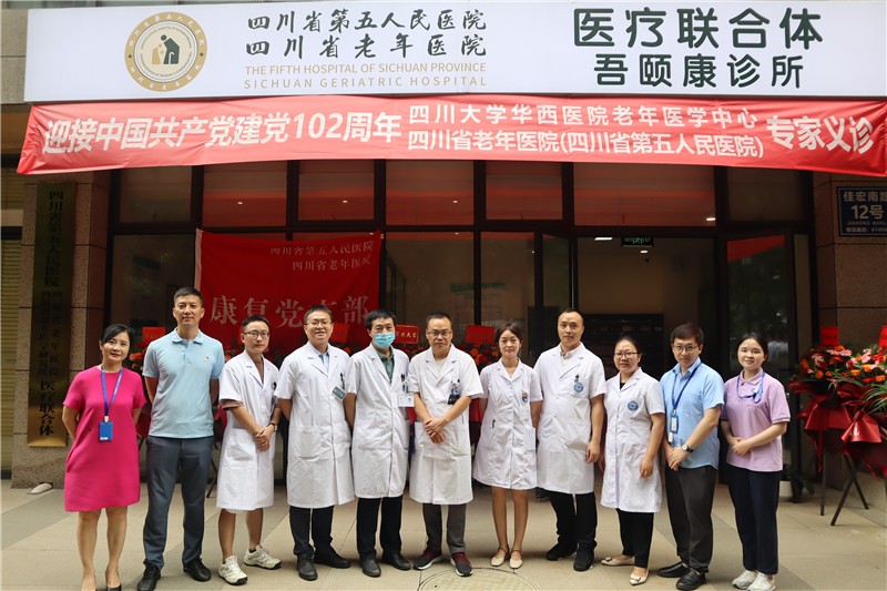 在建党102周年即将到来之际,2023年6月30日,川投盛榉公司与四川省第五人民医院·四川省老年医院联合,以川投舒适之家·颐康养老中心为载体设立的吾颐康中西医结合诊所正式开业。