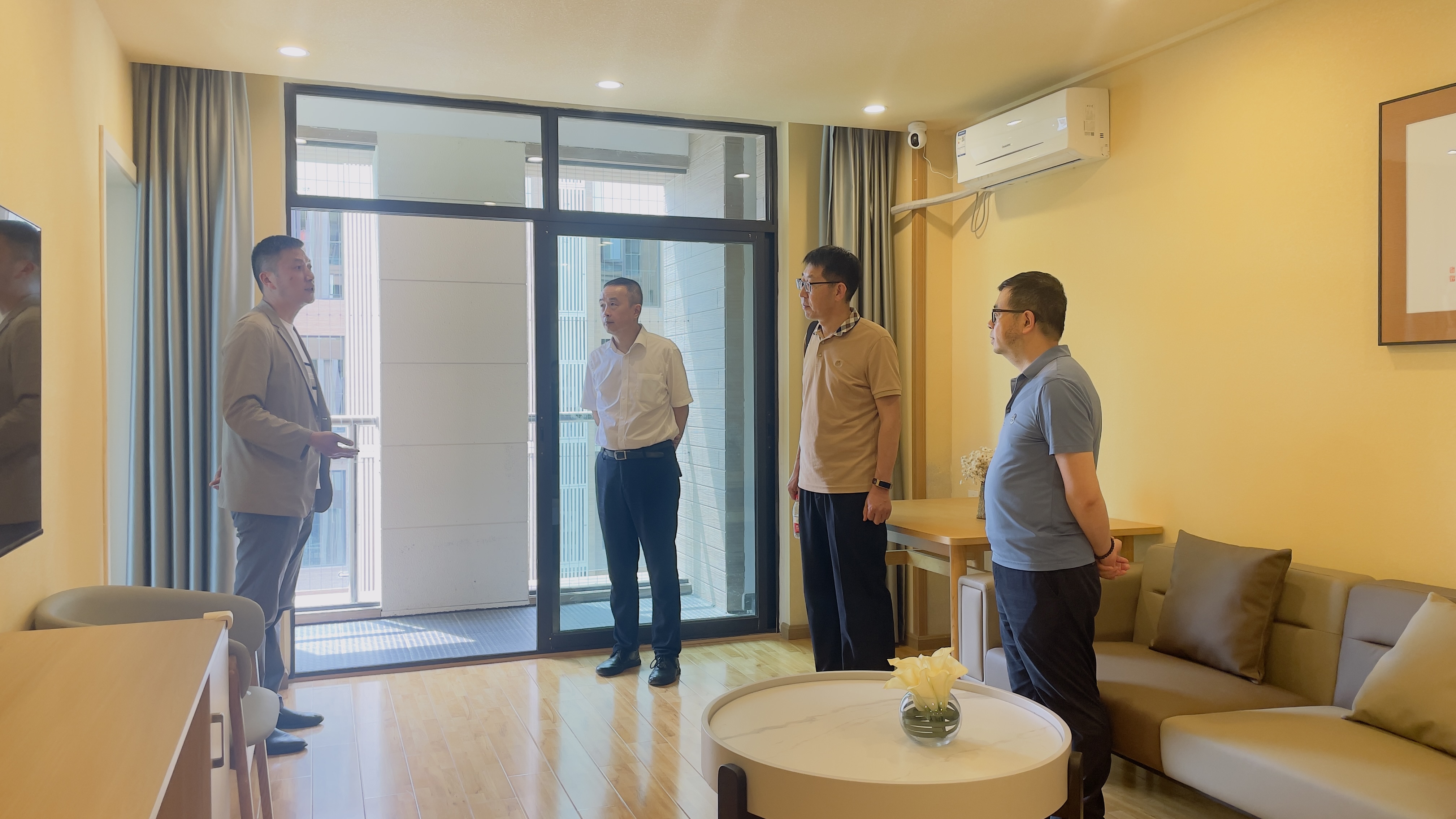 4月16日,成都金控置业有限公司董事长、总经理周晖一行到访川投盛榉公司所属川投舒适之家·武侯吉福院,川投盛榉公司党支部书记、执行董事、总经理杨飞陪同参观。
