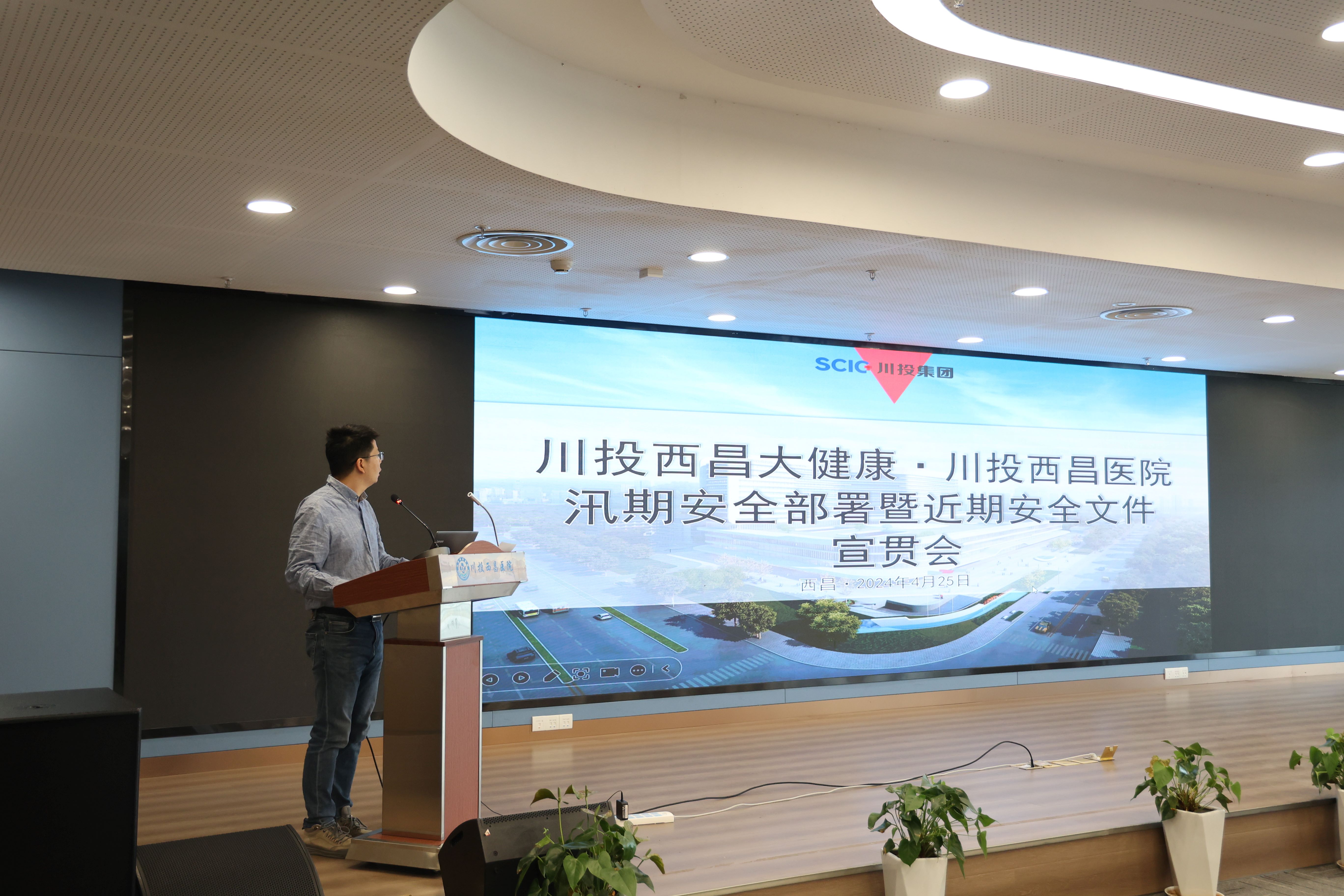 为落实省安委办、州市卫健部门及集团公司关于深刻汲取安全事故教训相关文件精神,强化警示教育,压紧压实各级安全生产工作责任,预防和减少汛期灾害事故发生,4月25日川投西昌大健康公司召开汛期安全部署暨近期安全文件宣贯会。公司安健环委员会主任龚坚,副主任、医院院长金鸿,安健环常务副主任陈奕,副主任蒲军、朱彦、钟萍,公司、医院各部门(科室)负责人、护士长参会。