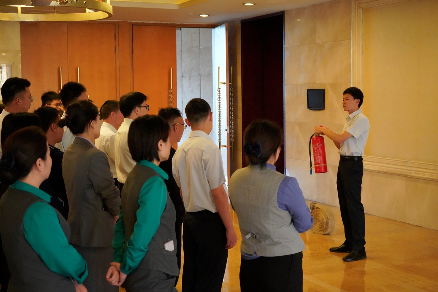 演练前,公司安环后勤部相关人员现场传达学习省国资委《关于保持高度警惕采取有力措施认真抓好安全生产和防灾减灾工作的通知》相关内容,详细讲解干粉灭火器、消火栓使用方法、应急逃生技巧以及日常安全隐患的排查方法等安全知识。