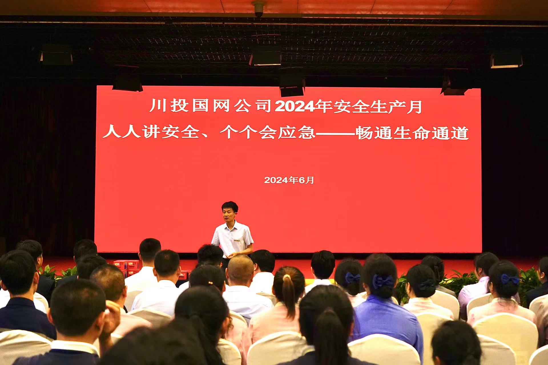 今年6月是第23个全国“安全生产月”,活动主题为“人人讲安全,个个会应急——畅通生命通道”。根据川投国网公司《安全生产治本攻坚三年行动方案(2024-2026年)》《2024年安全生产月活动方案》相关部署要求,6月4日下午,川投国网公司在川投国际酒店宏图厅围绕“以案为鉴绷紧弦,抓实培训提能力”开展公司安全生产月首次主题活动。