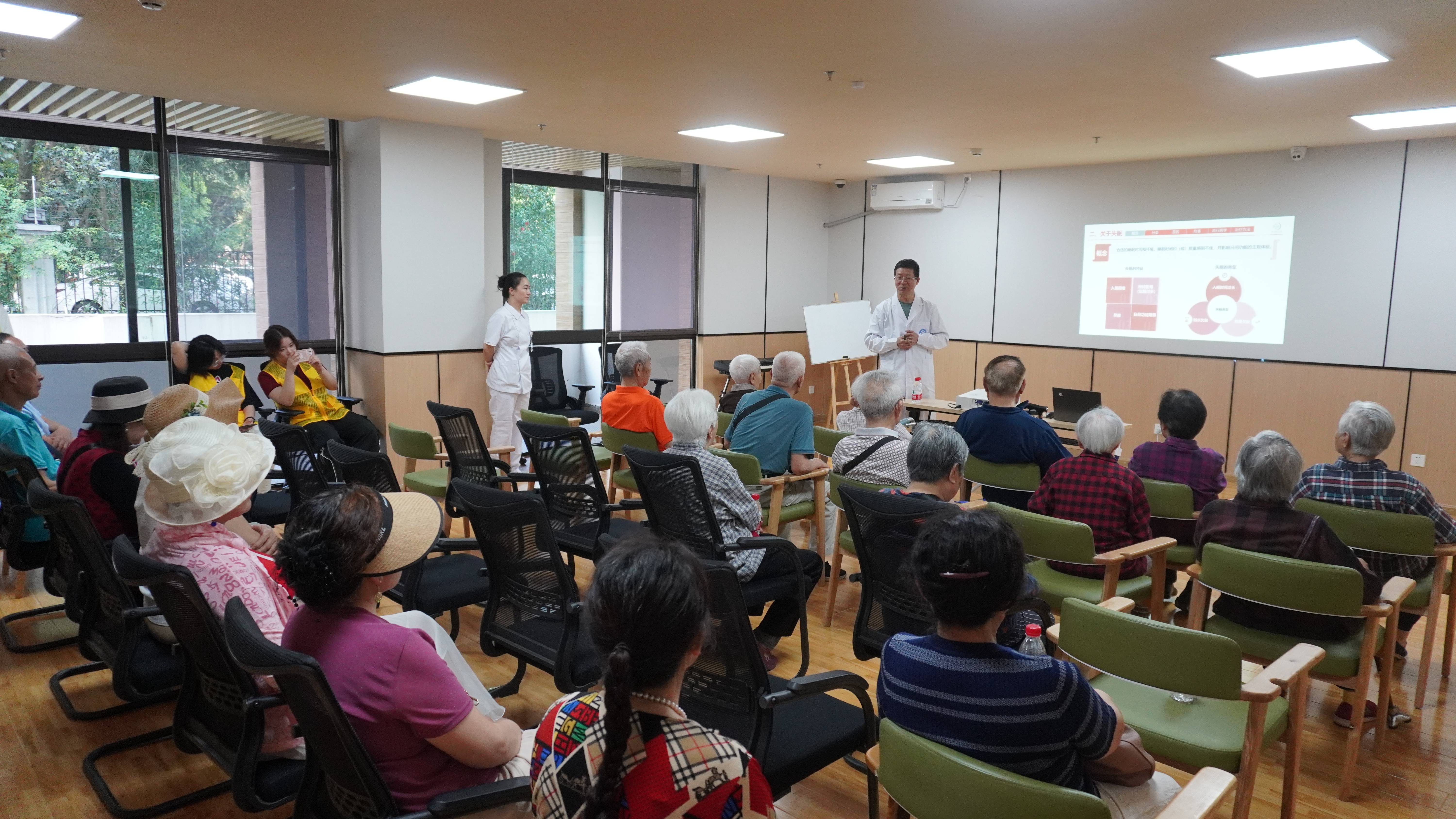 义诊现场,专家团队以丰富的临床经验和卓越的专业技术,为社区居民提供免费诊疗服务和个性化健康评估,获得了大家的高度赞誉。随后,郑宏教授、熊兴会主治医师、李妍宏主治医师等专家还深入楼层,从老年慢性病、康复护理等方面对在住长者提供一对一指导,并同步开展高血压、糖尿病专题讲座,不断提升长者健康意识和常见疾病的认知水平。