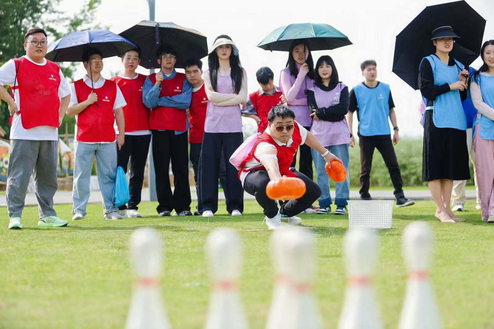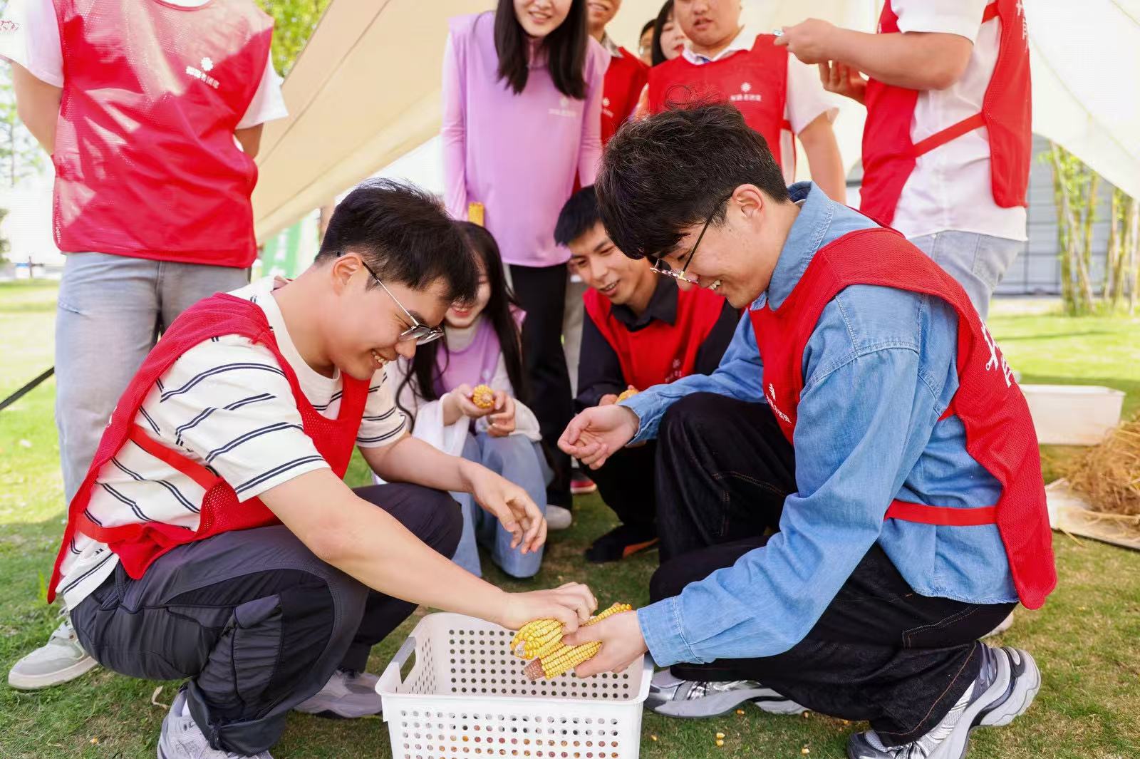 在专业讲解员的引导下,全体人员有序参观天府农博园博物馆,深入了解四川农业文明发展历程与乡村振兴成果,深刻感受劳动精神的代代传承,进一步增强对“劳动创造美好生活”的认同感。参观结束后,一场别开生面的农耕体验趣味赛将活动推向高潮。双方青年职工随机混合组成三支队伍,先后完成干玉米脱粒、稻草人扎制、南瓜保龄球等特色任务,现场欢声笑语不断,充分展现了青年职工团结拼搏、积极向上的精神风貌。