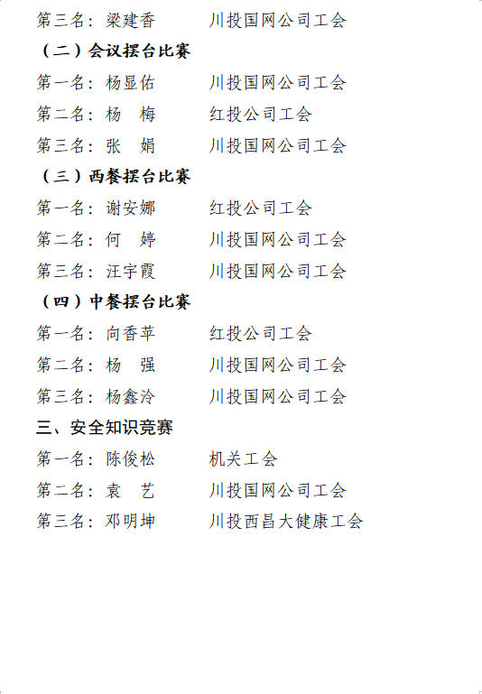 6月20日,酒店服务类竞赛在川投国际酒店蜀韵厅火热进行,共设置中式铺床、会议摆台、中餐摆台、西餐摆台4个项目。来自川投国网公司工会、红投公司工会的21名职工参加比赛,比赛全程紧张有序,参赛选手们在比赛中展示出的娴熟技艺和专业操作赢得了现场观众的热烈掌声。