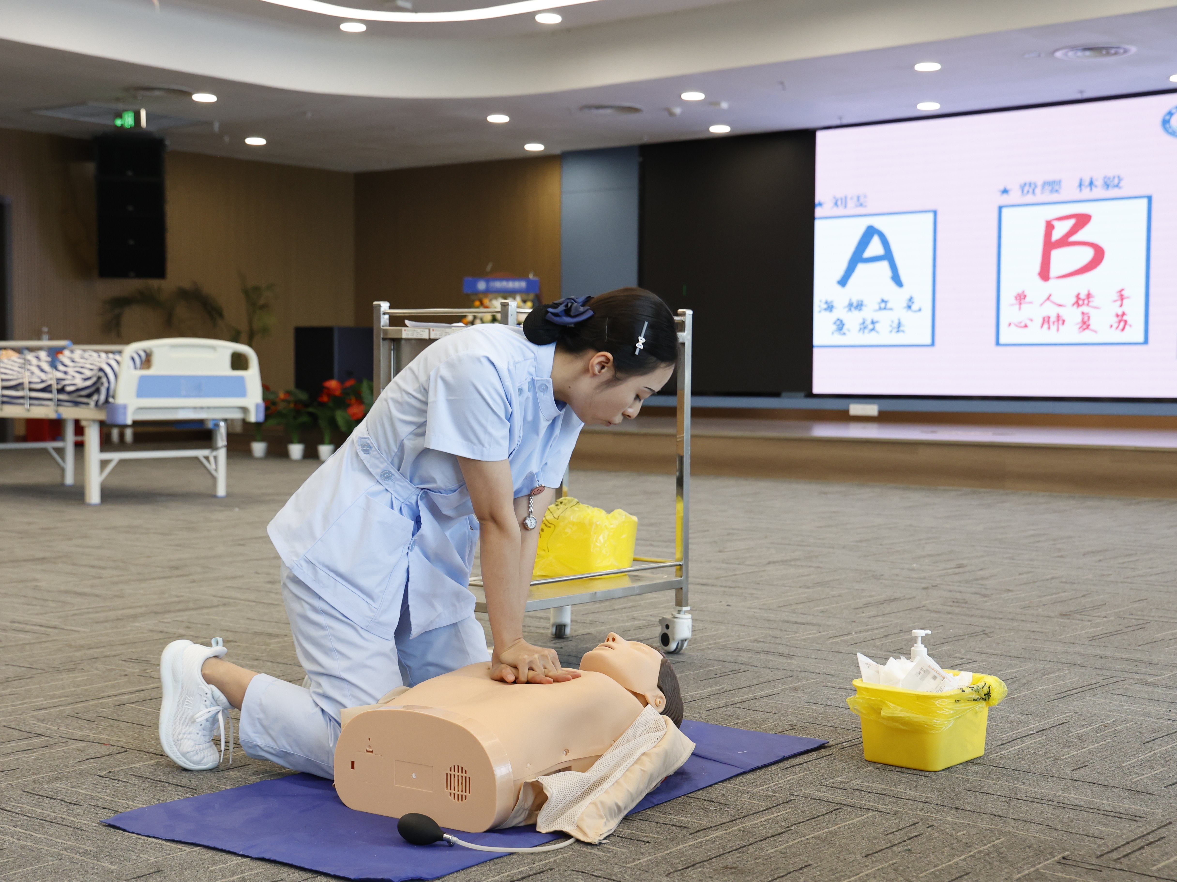 6月17日,护理技能类竞赛在川投西昌医院五楼多功能学术厅如火如荼开展,共设置海姆立克急救法、单人徒手心肺复苏、心电监护3个项目,来自川投西昌大健康公司工会、川投盛榉公司工会和万康公司工会的63名参赛选手进行模拟场景,对患者进行救助。