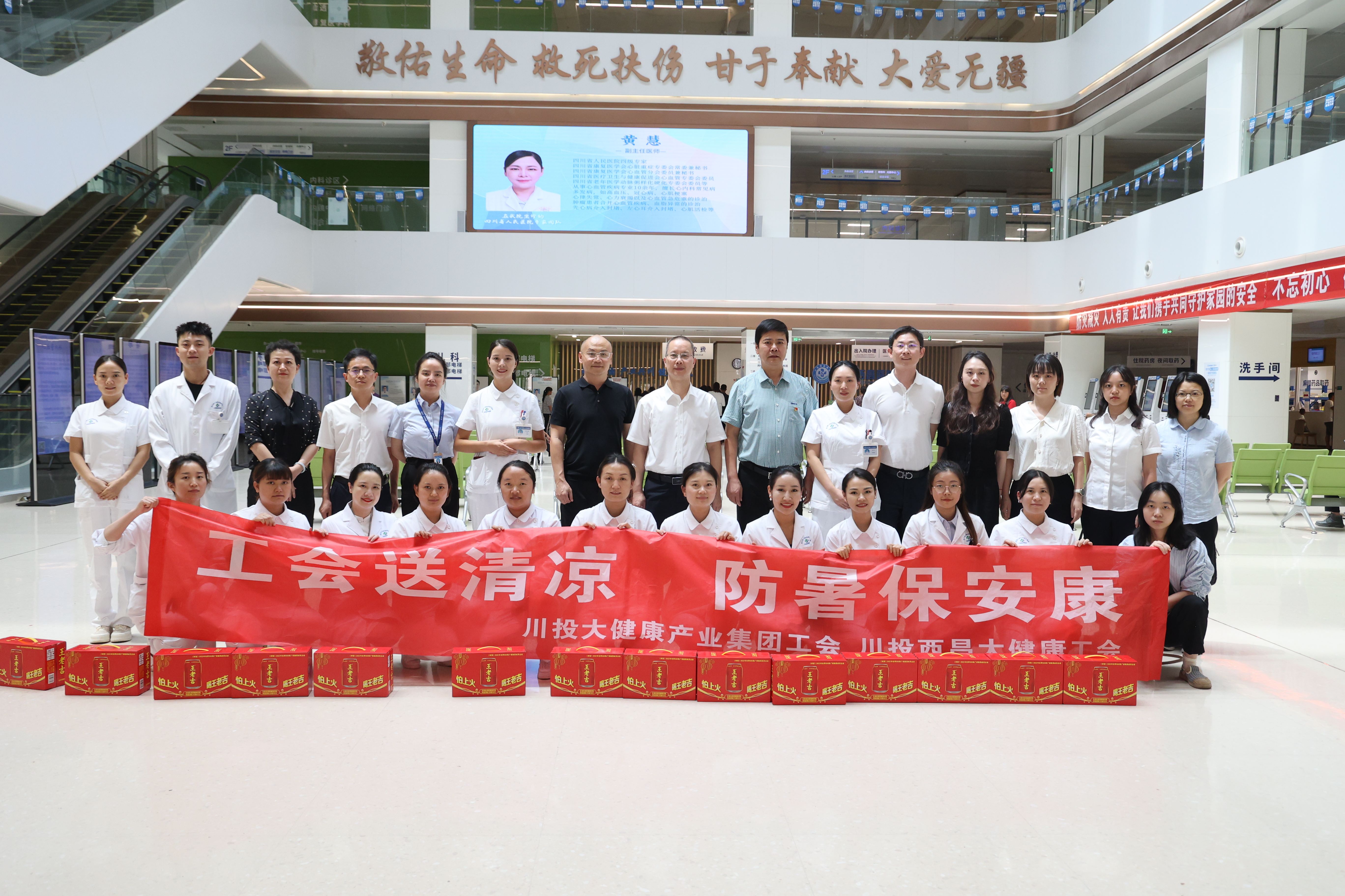 7月18日,四川川投大健康产业集团有限责任公司产业集团党委副书记、总经理周家超一行到川投西昌大健康开展调研指导及“送清凉”慰问。四川川投大健康产业集团有限责任公司产业集团副总经理,川投西昌大健康党委书记、董事长龚坚;川投西昌大健康党委副书记、医院院长金鸿陪同调研慰问。